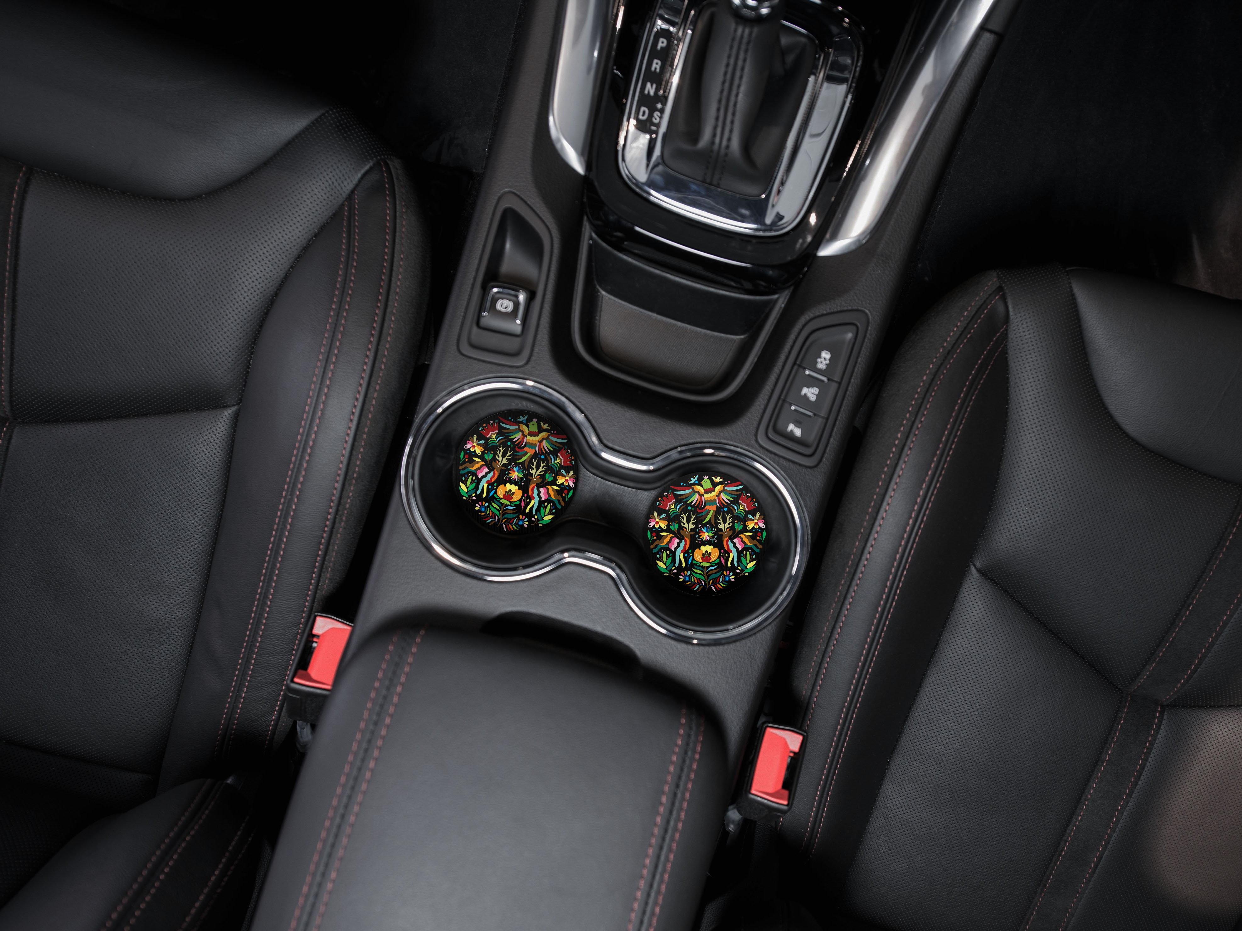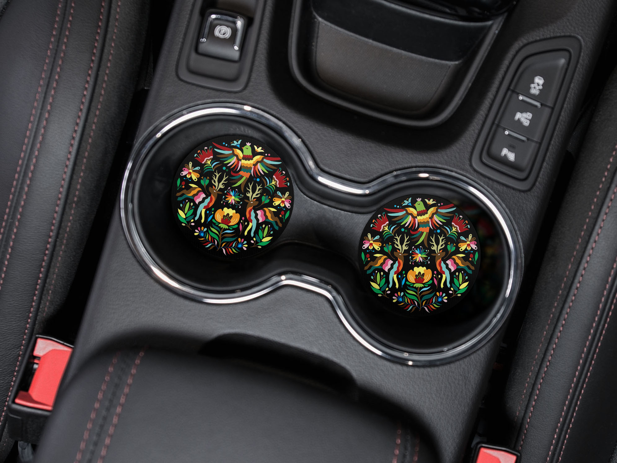• Set of 2 round absorbent neoprene car coasters