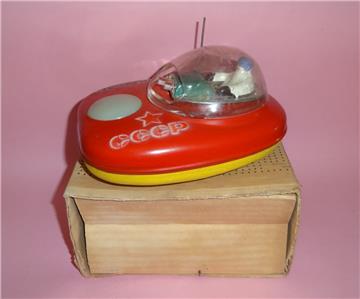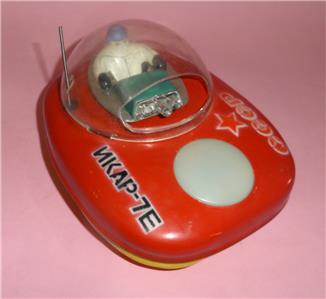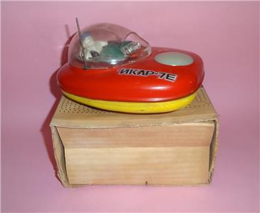 As you can see in the photos this nice TIN LITHOGRAPHED CCCP LUNAR SPACECRAFT /i/KAP-7E comes in used condition, with some wear around the tinplate due to age. All writings and markings are clean and clear with nice vivid colors. The transparent plastic cabin on top has some fadings. The ASTRONAUT inside the cabin comes in good place and state. The battery case at the bottom is clean and the lid opens and closes well. The toy is accompanied by a manual (pls check photos). The ORIGINAL BOX comes in used condition.