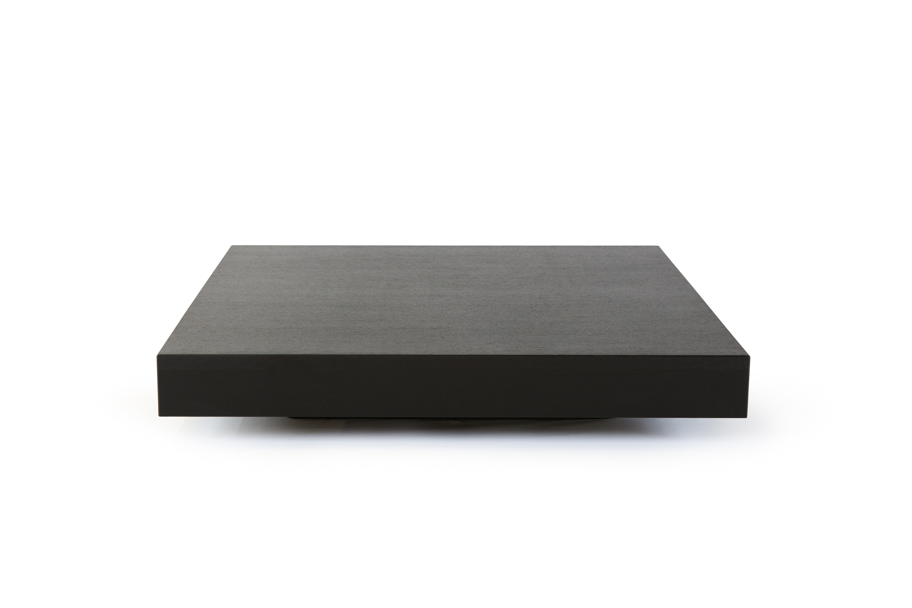 The Ritter Coffee Table by Rodolfo Dordoni for Minotti, which comes in two sizes, has a black painted wood base that gives the impression that it is floating above the ground. The table's hypnotic substance is provided by the exotic Moka-colored lacquered brushed wenge, which is complemented by a simple, minimalistic design aesthetic. The veneer and brushed finish, which are created from a unique 2 mm-thick sheet, enhance organic value and provide visual and tactile sensations that are comparable to those of solid-wood products. Ritter is available in exquisite hues of glossy lacquer in addition to wenge.