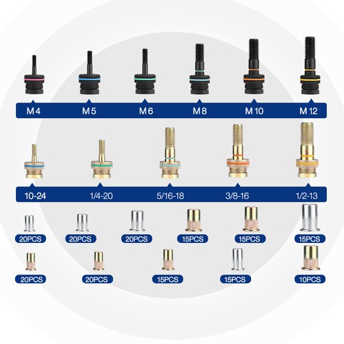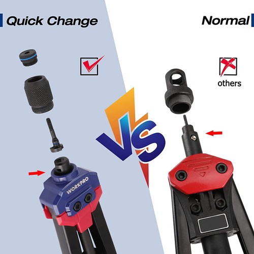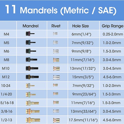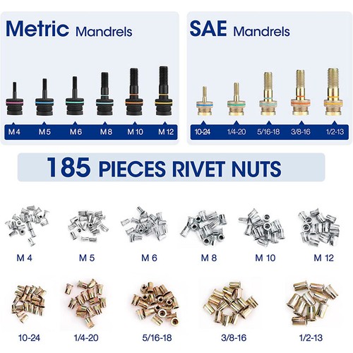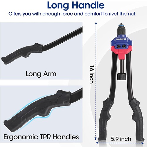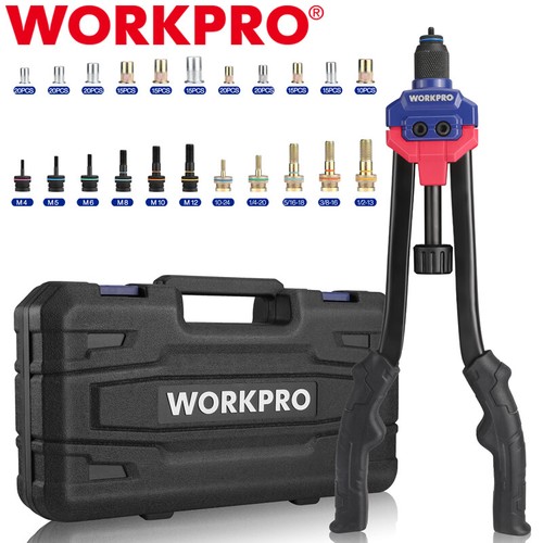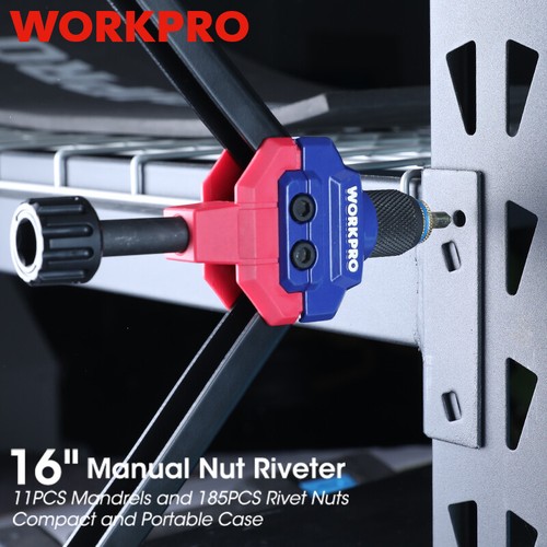 ![]() | Complete AccessoriesWORKPRO 16" Manual Nut Riveter is equipped with 11 sizes of mandrels including 185 pcs nuts. These 11 popular sizes of mandrels cover most daily needs, and they are ideal for home and others. |