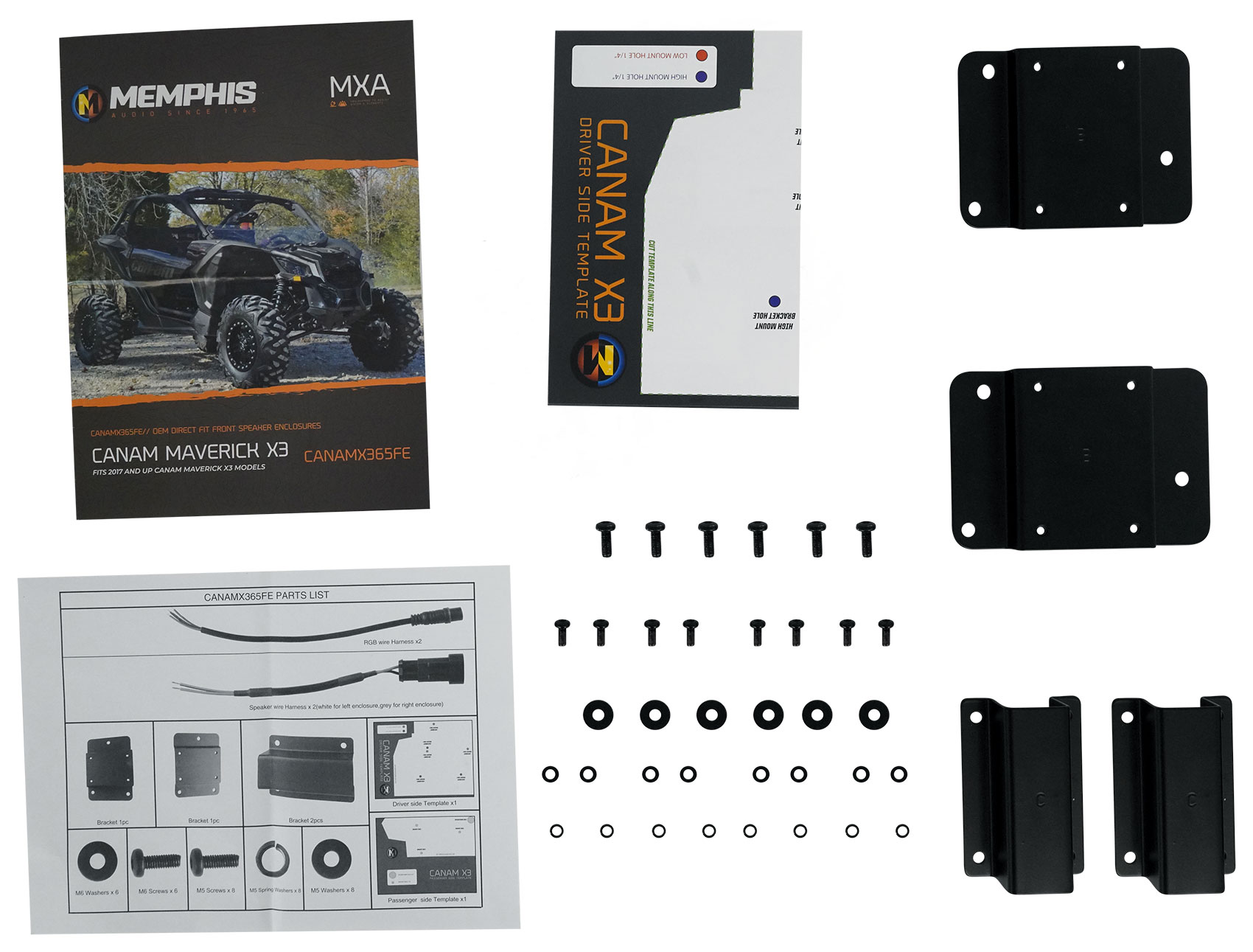 Memphis Audio direct fit OEM speaker pods are designed to fit directly into your vehicle with zero custom fabrication required. Lightweight durable injection molded polypropylene speaker enclosures are tuned for maximum output and feature RGB LED lighting which illuminates the speaker cone, Memphis badge and provides down lighting making your machine stand out from the crowd. All the components used in this kit are marine grade and designed to withstand water and the elements. CanAm X3 speaker pods are the best way to add speakers to your CanAm Maverick X3.