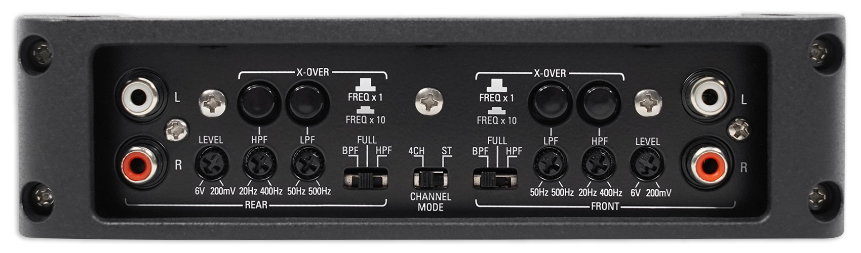 - Channel Mode Switch (ST/4Ch) - In the Stereo position, the amplifier will send the same signal to front and rear channels.