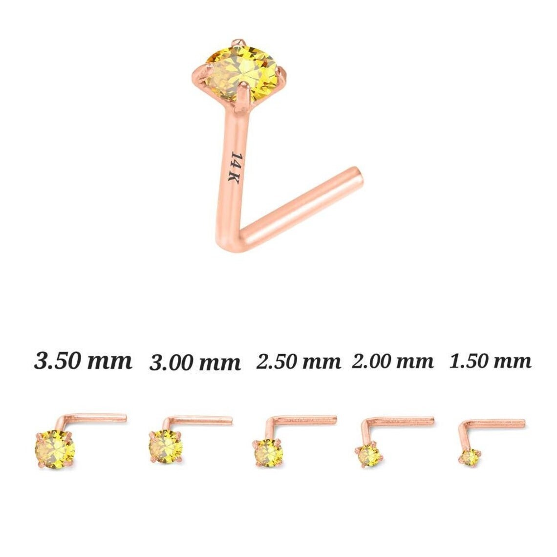Citrine 14K Solid gold Genuine Real Nose Stud , 14K Solid Gold in L shaped, 20 GA Real Natural citrine