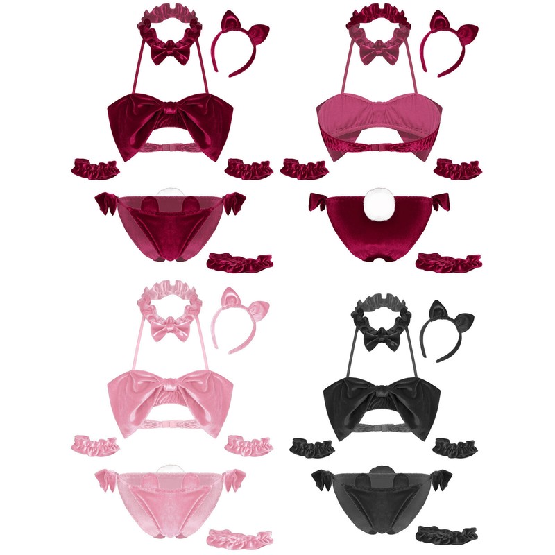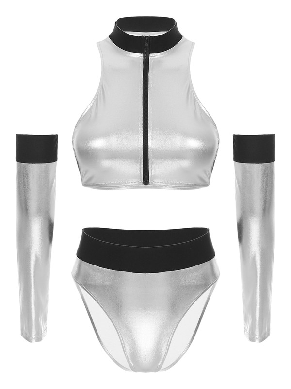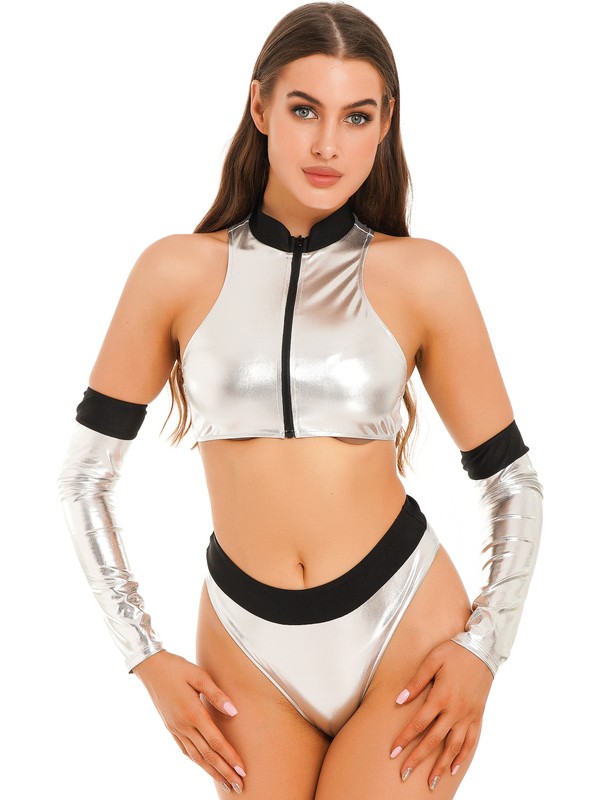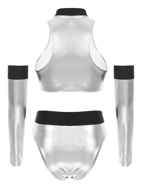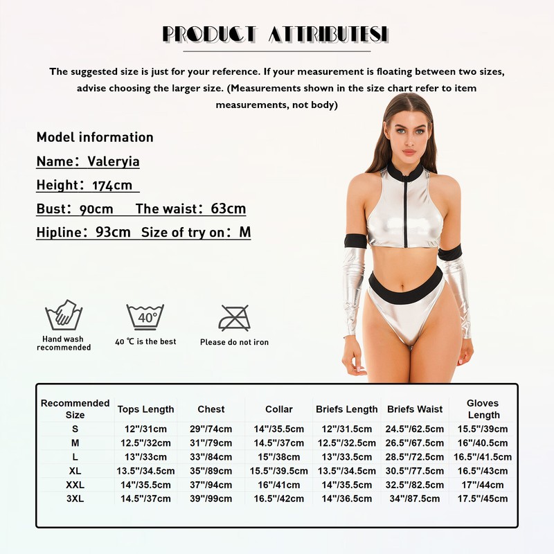 Set Include: 1x Crop Top, 1x Briefs, 1 Pair Gloves