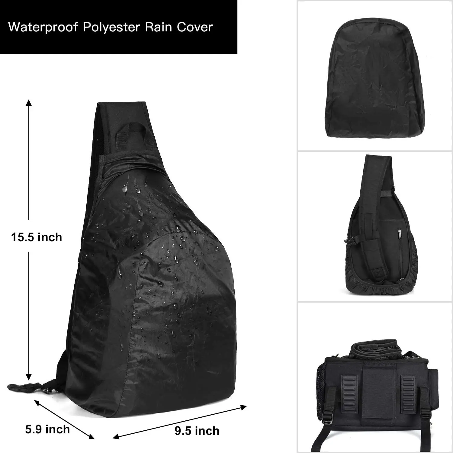 This durable polyester camera bag contains several compartments for camera, phone, accessories and personal belongings. 1 vertical zipper bag can store the rain cover which comes with this camera sling bag.