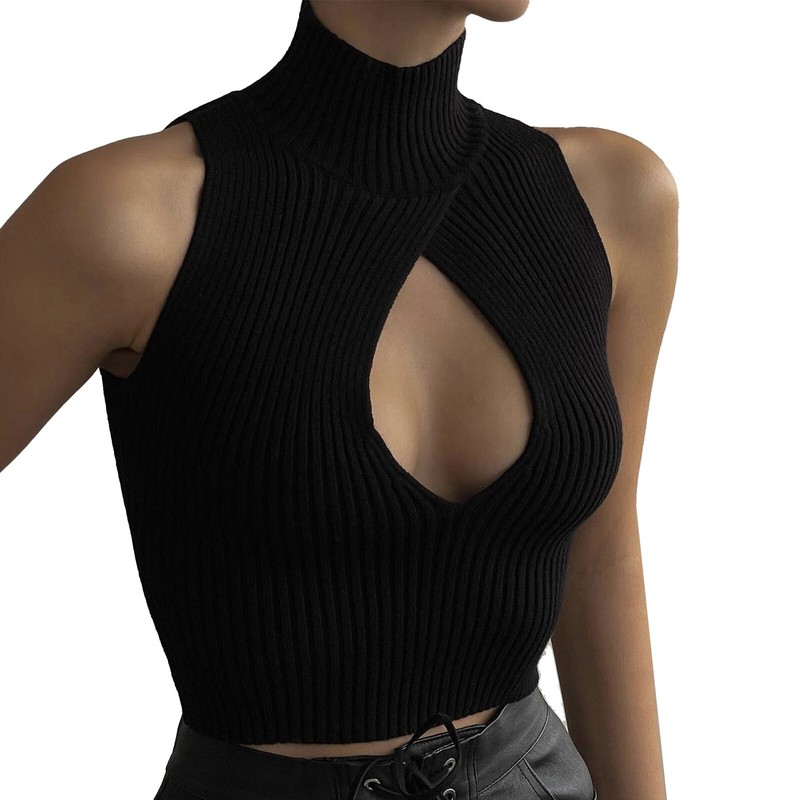 Sleeveless crop top for women, high neck, ribbed design, keyhole front perfectly show your feminine charm.