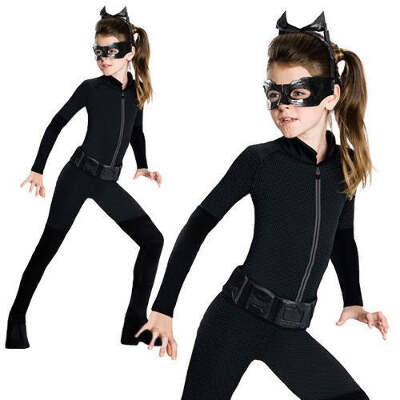 Catwoman Costume Girls Halloween Fancy Dress + Mask Kids Batman Age 4-12