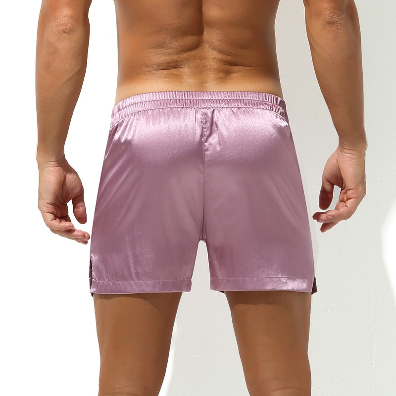 Mens Elastic Waistband Satin Shorts Underwear Mid Waist Side Split Boxer Brief.