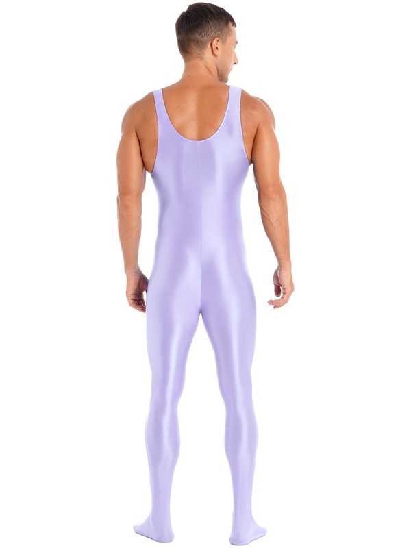Mens Sleeveless Full Body Bodysuit Solid Color Round Neck Bodystocking Nightwear.