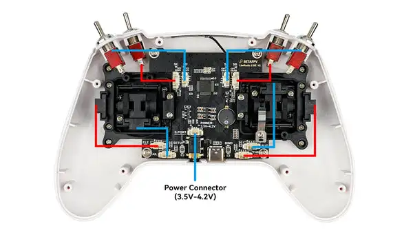Below is the connection diagram for potentiometer gimbal. Here is the example on Literadio 2 SE (mode 2).