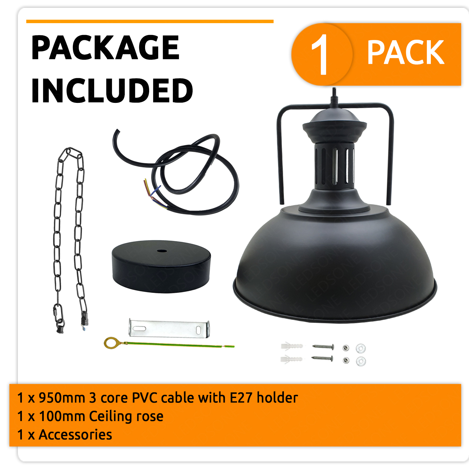 (Safety & Guarantee): CE certified. Additionally, the pendant light cables are of the highest quality and safety. It is designed with the 3 core wire in other words, it is fully earthed. The usual reason behind this design is safety