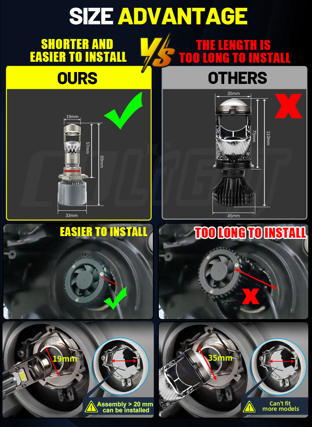 Y12 Pro bulb is smaller size, better Installation pass rate.
