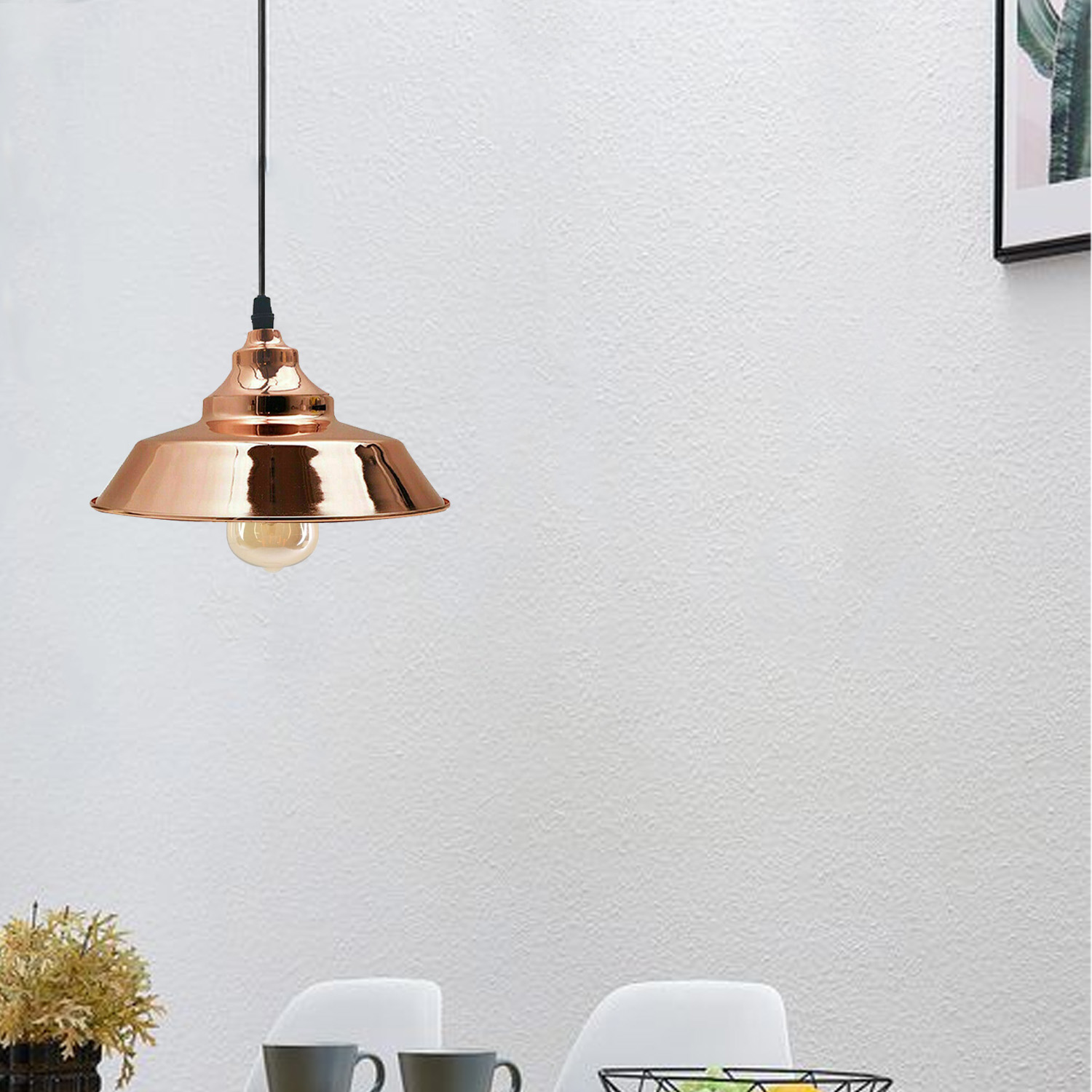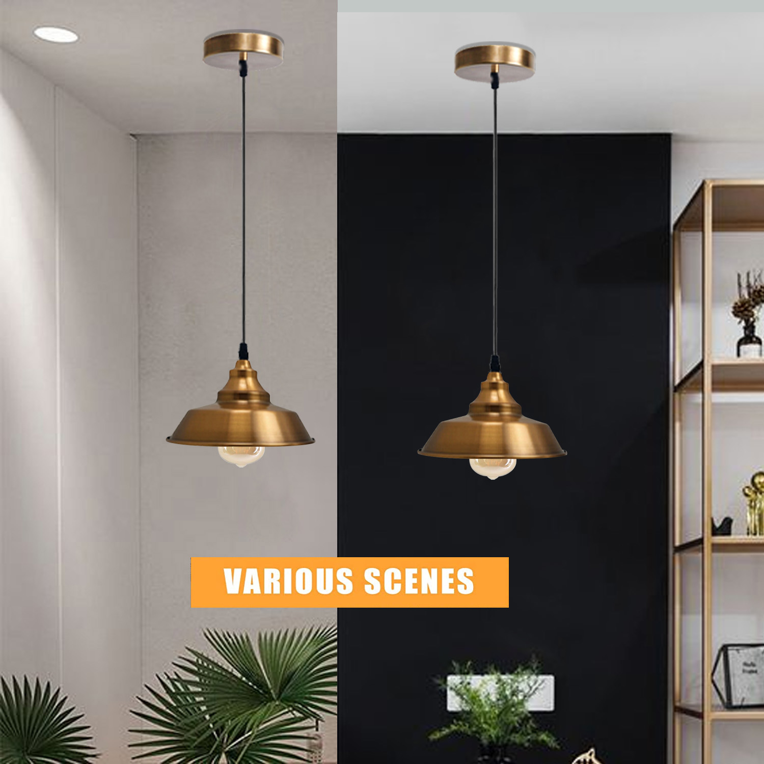 Vintage style Hanging Ceiling E27 metal Pendant Light shade with Light-Adjustable Cable easy fit lamp for Kitchen Island, Bed room lighting , Sloped ceiling adaptable