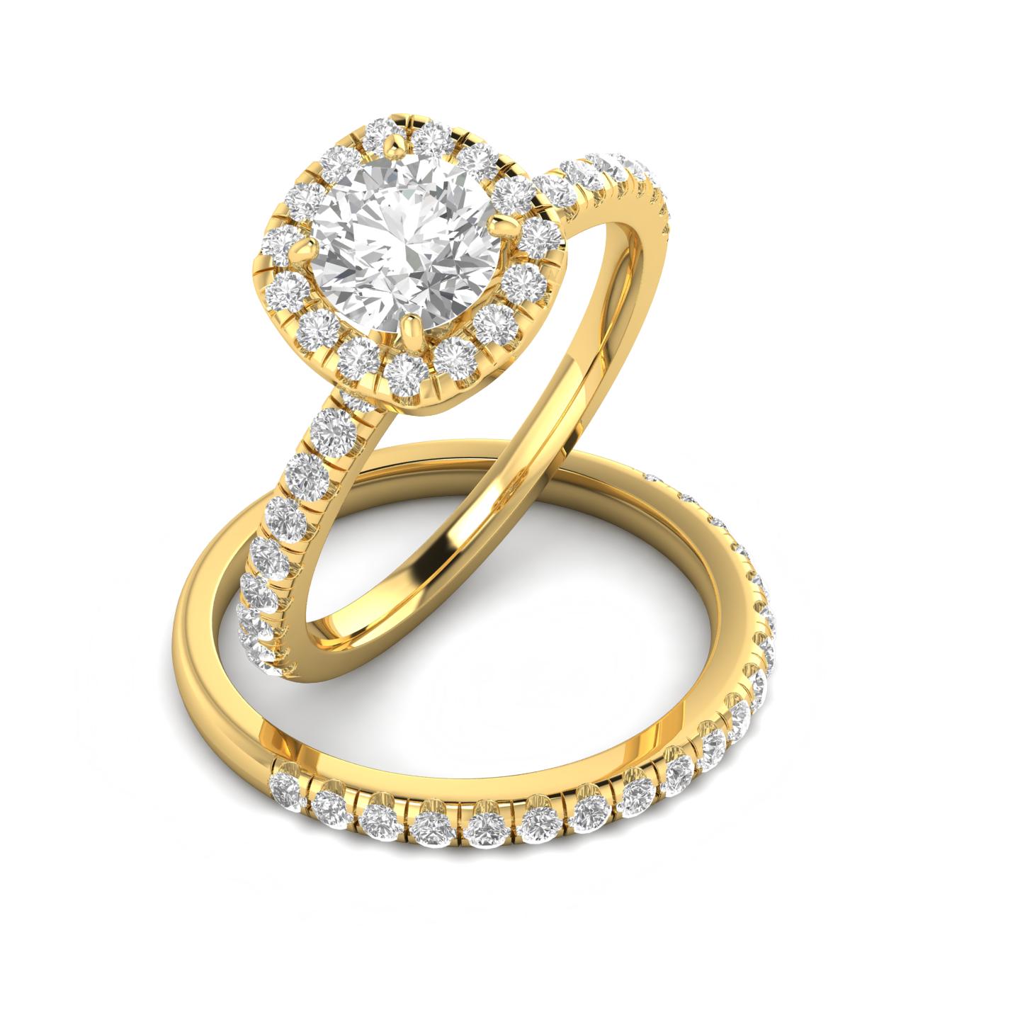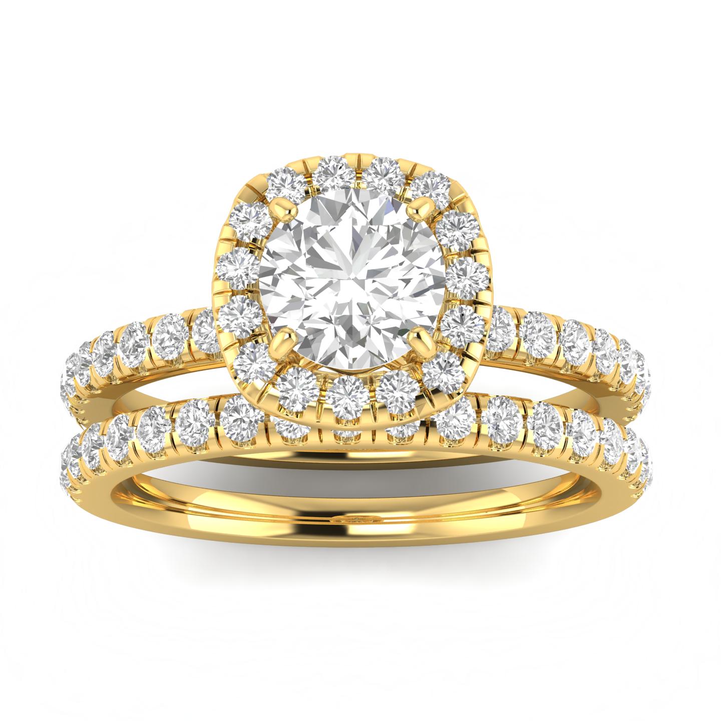1.00ctw Diamond Halo Bridal Set Engagement Ring in 14k Yellow Gold (H-I, I2-I3, Size 4)