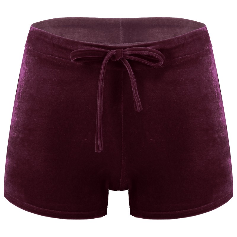 Women Pure Color Flannel Adjustable Drawstring Elastic Waistband Pleated Sport Shorts.