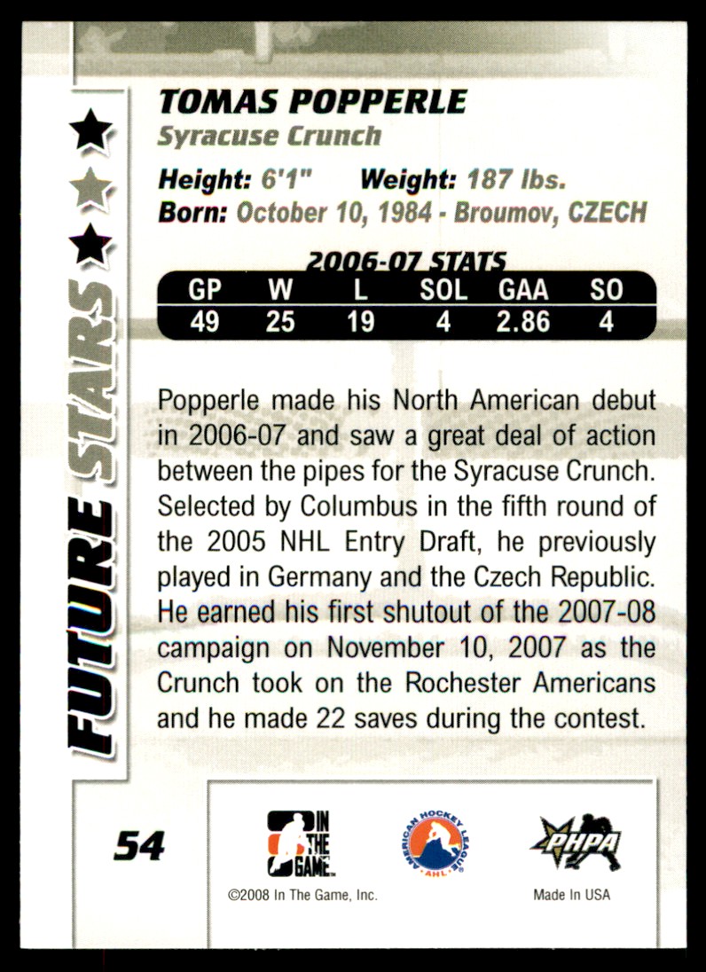 | 2007-08 In The Game Between the Pipes 54 Tomas Popperle | ||||||||||||||||