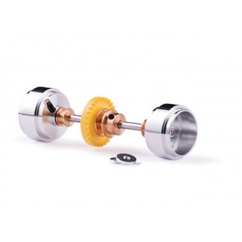 Slot.it Starter Kit 07 - 28t inline crown, 17.3x9.75mm aluminum wheels, 54mm pro axle, bronze bearings, spacers and grub screws.