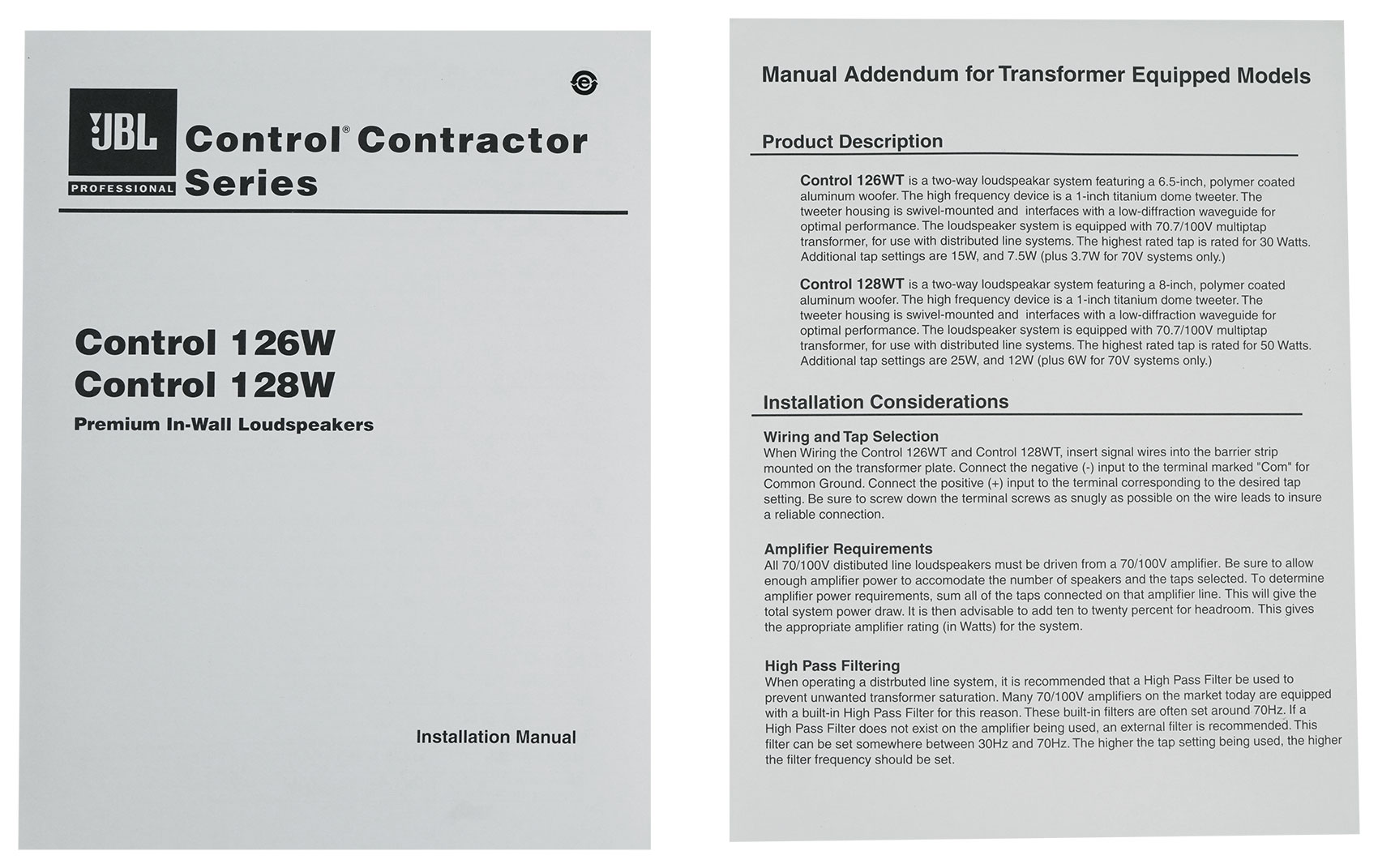 The Control 126W is a premium in-wall speaker within the JBL Professional Control® Contractor line designed for applications such as foreground music, boardrooms, reception areas, airports, convention centers, cruise ships, retail outlets, restaurants, museums, surround locations, or any critical listening application where top performance from a loudspeaker with minimal visual impact is required.