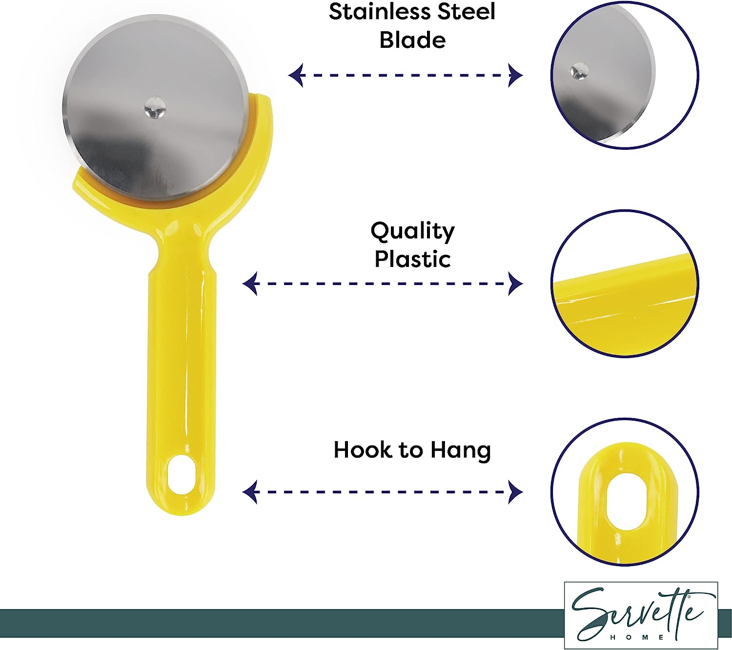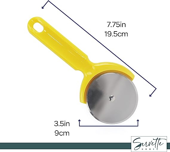 This Plastic Handle Pizza Cutter is the perfect tool for slicing pizzas with ease. With a 3.5 inch stainless steel blade, this pizza cutter can easily cut through any size pizza with minimal effort and mess. The ergonomic plastic handle ensures a safe and secure grip while cutting, making it easy to use even for those who don't have much experience in the kitchen! The Plastic Handle Pizza Cutter is also dishwasher-safe so you can quickly clean up after your meal without having to worry about scrubbing or soaking it in water afterwards. Whether you're an experienced chef or just starting out on your cooking journey, this pizza cutter will be an indispensable addition to your kitchen!