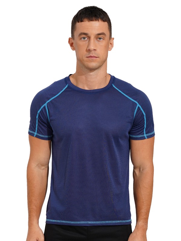 Men Cotton Breathable Solid Color Mock Neck Short Sleeve Stretchy Sport Top Fitness Training Top.