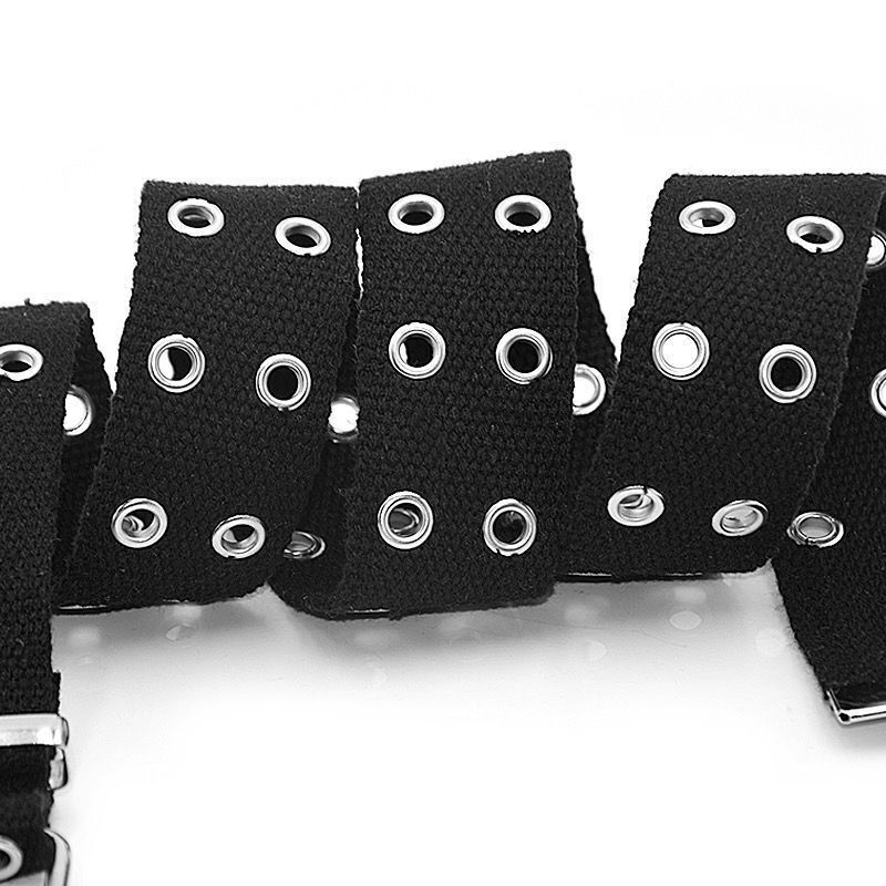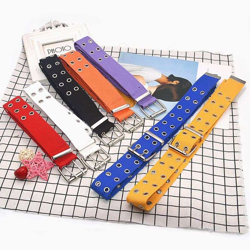 Studded Women Canvas 2-Row Double Grommet Waistband Belt Men Holes Belts Strap