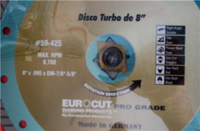 Eurocut 8'' Turbo Rim Diamond Blade Saw Cuts Roof Tile, Block, Brick, and Stone