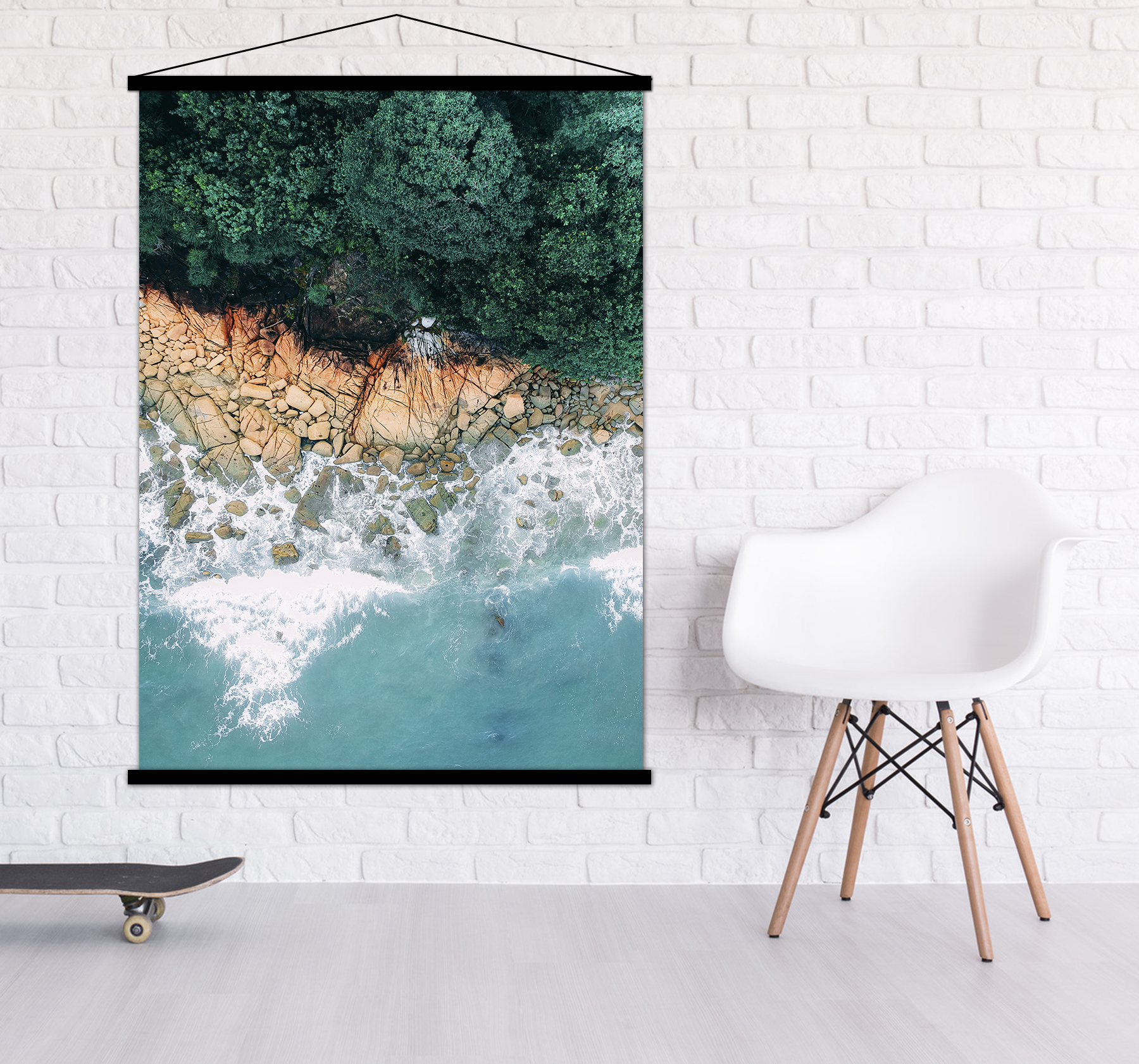 Um ein Poster zu rahmen benötigt man nicht unbedingt einen Posterrahmen. Das geht auch mit diesen praktischen und super-günstigen Posterleisten. Alles was du tun musst, ist das Poster indie obere und in die untere Schiene zu schieben. Das Poster sitzt perfekt und kann sofort aufgehängt werden.