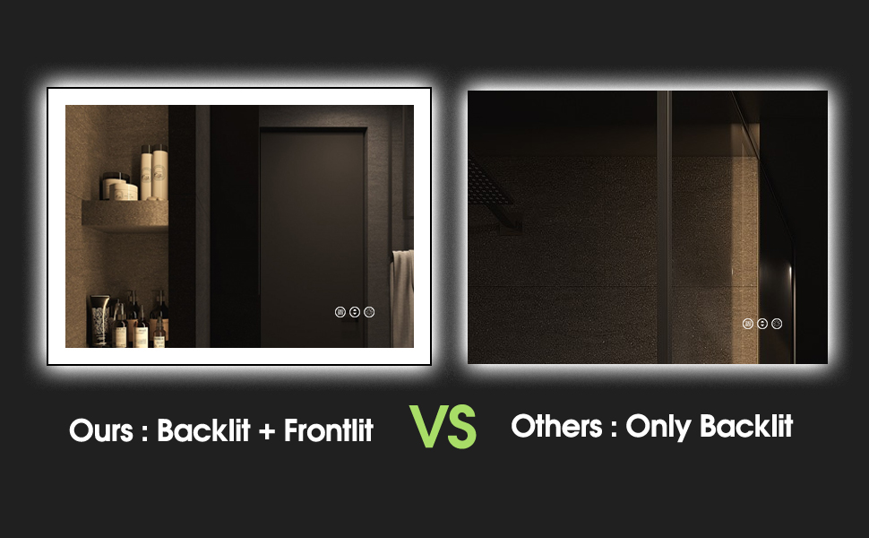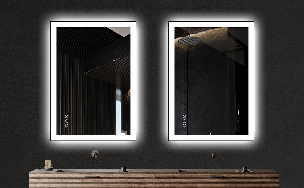 Upgrade your bathroom with our Framed LED Bathroom Mirror - a perfect combination of durability, elegance, and modern design. The double lights, front, and back, illuminate your space, providing brighter lighting for your makeup, shaving, and skincare routines. Crafted from high-quality aluminum alloy and thickened baking paint, the black metal frame ensures both lightweight construction and enhanced sturdiness, offering optimal protection for the mirror.