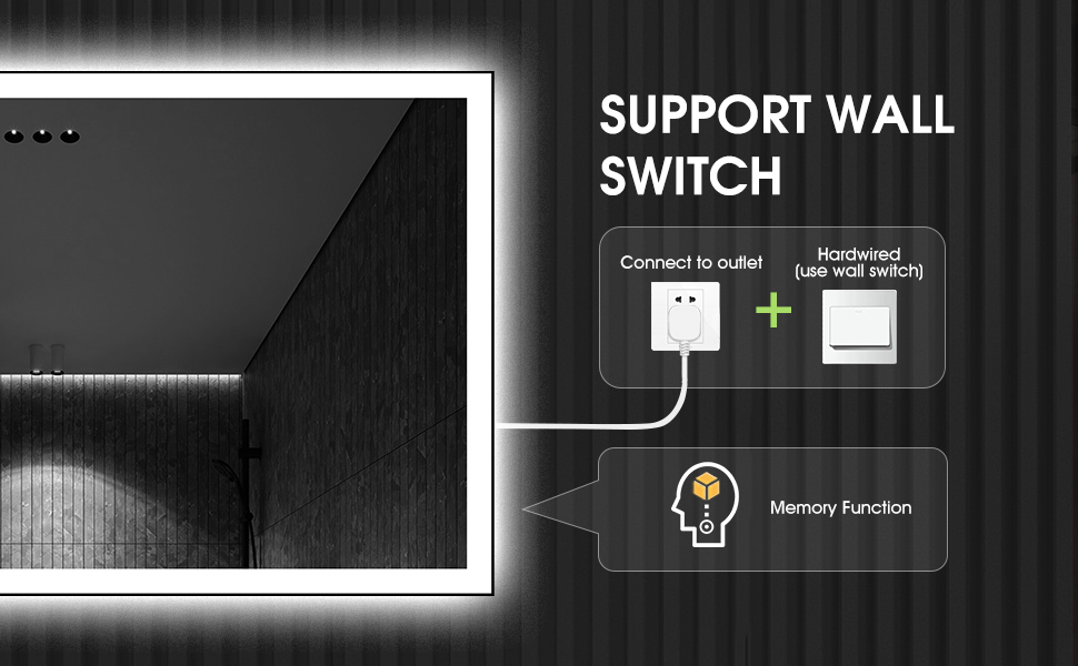 Tailor your lighting experience to suit your preferences and needs with our Dimmable & Memory feature. Easily adjust the color temperature and brightness with a simple touch. Switch between warm white (3000K), neutral lights (4000K), and white lights (6000K) with a short press. For personalized brightness control, long-press to adjust illumination from 10% to 100%, or smoothly transition between colors. Plus, enjoy the intelligent memory function, as the mirror retains the last light setting used.