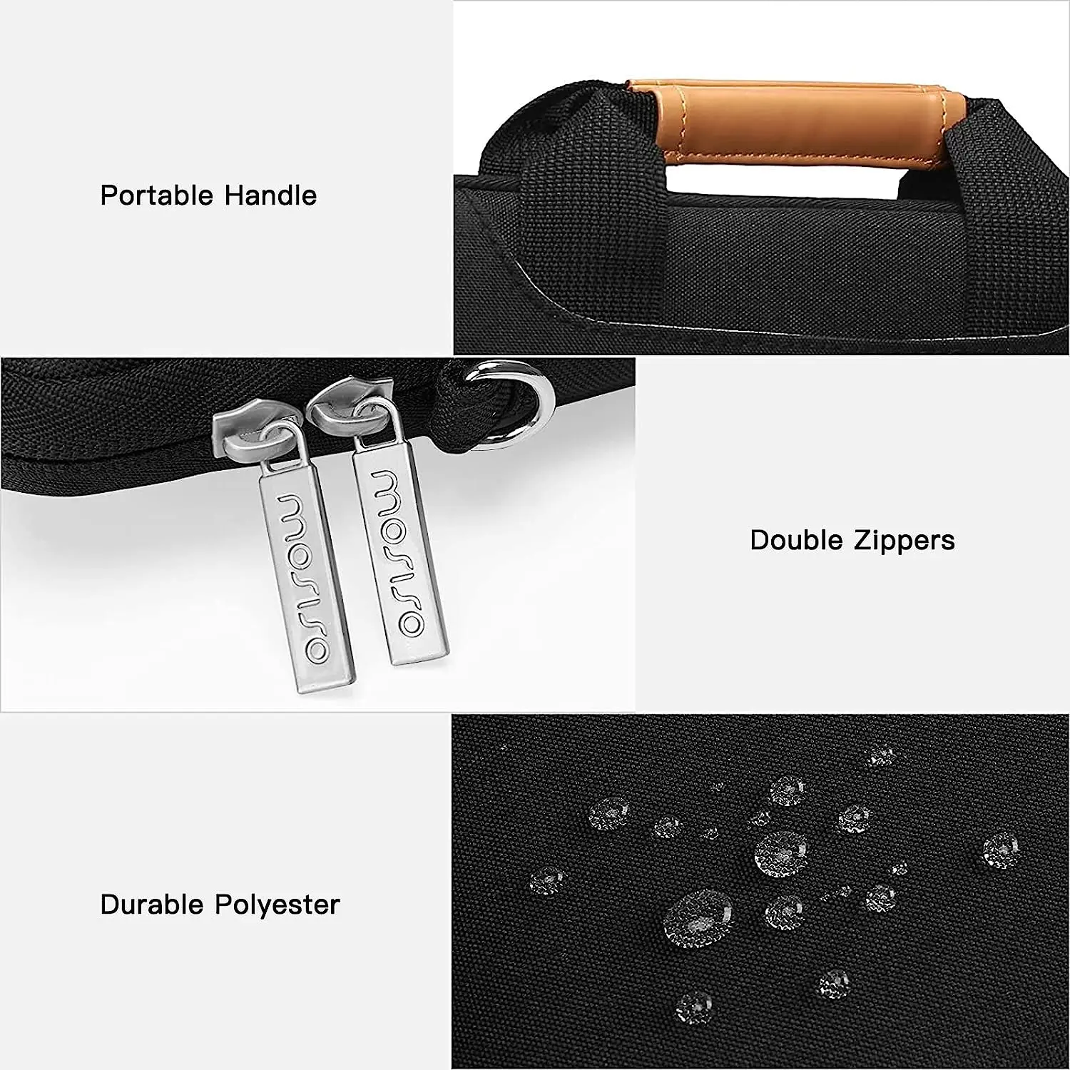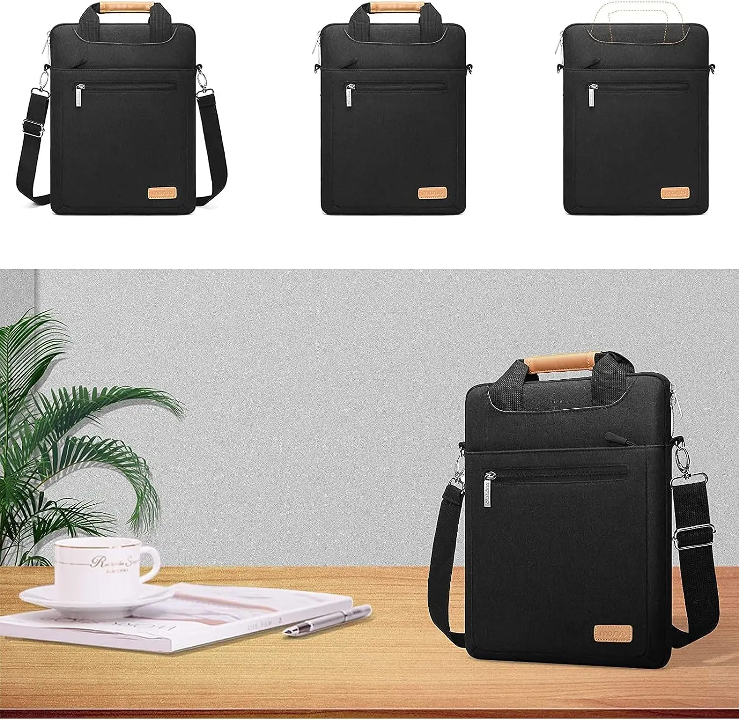 Removable and adjustable padding shoulder strap varied from 24 - maximum 47.3 inch, top handles also can tuck away in the pockets when not needed. You can use it as messenger shoulder bag, crossbody bag, briefcace hadbag and sleeve bag in whatever way you like. Dual sturdy handles for long time comfortably carrying.
