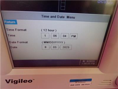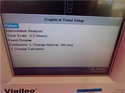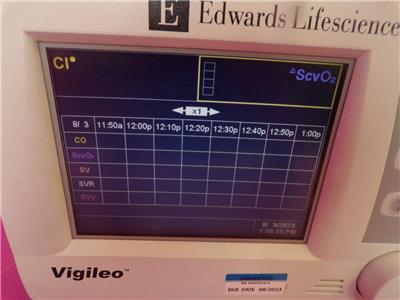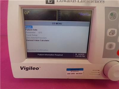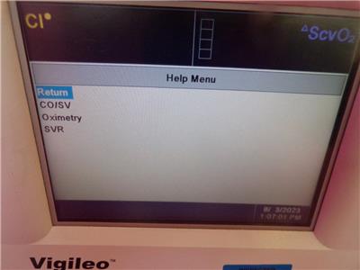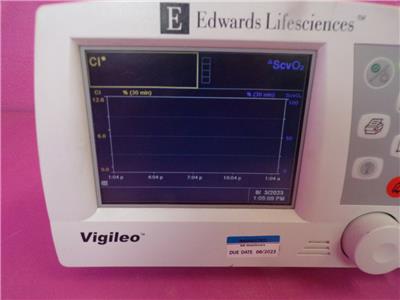 Edwards Lifesciences Vigileo MHM1 Cardiac Monitor is in good cosmetic and power tested working condition. The unit powers on without errors and I was able to easily navigate through all of the menus and options. This unit is used with the FloTrac Sensor option. Does not come with FloTrac or patient leads. Guaranteed not to be DOA.