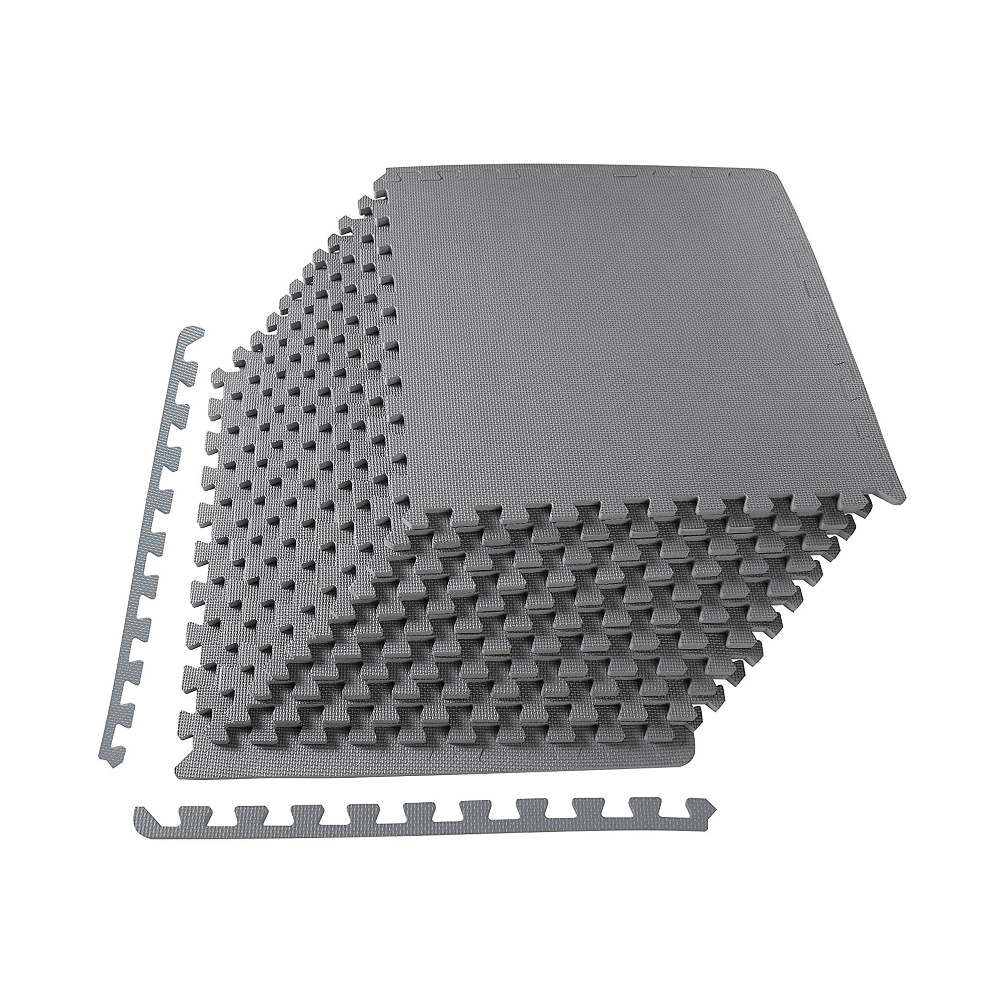 • 12 24 x 24-inch foam exercise tiles with interlocking edges and 24 end borders for 48 square feet of durable support in your home, gym, or daycare