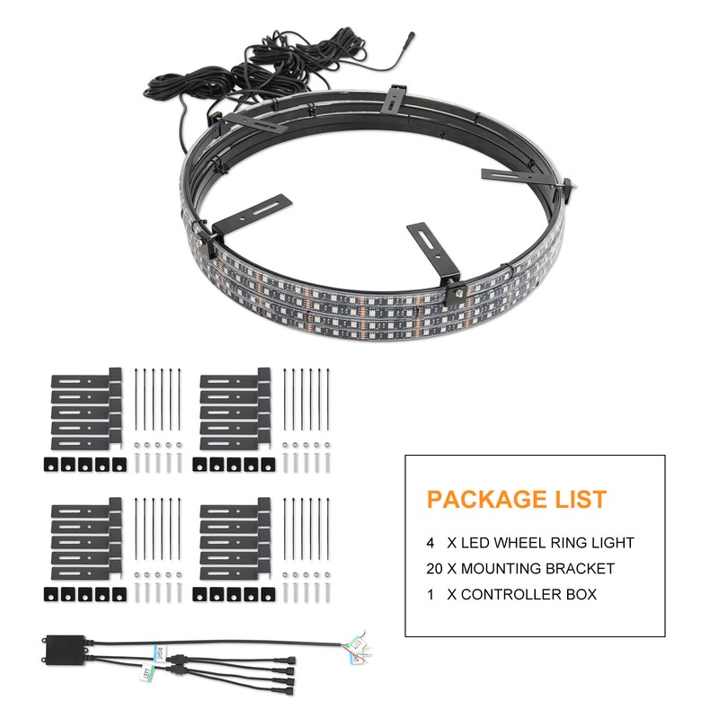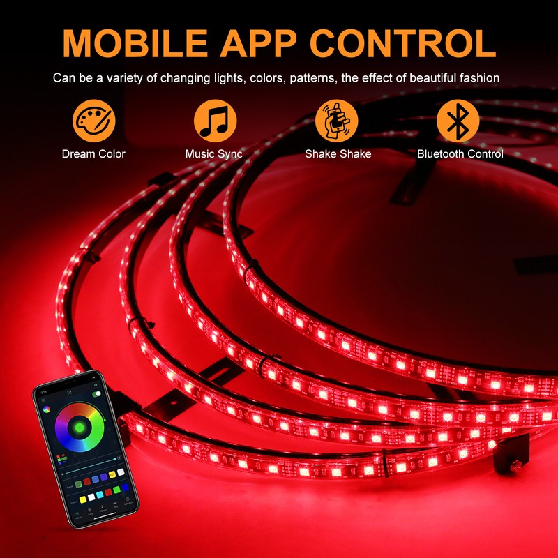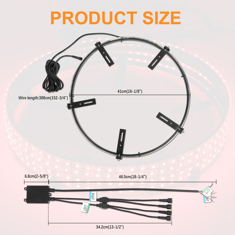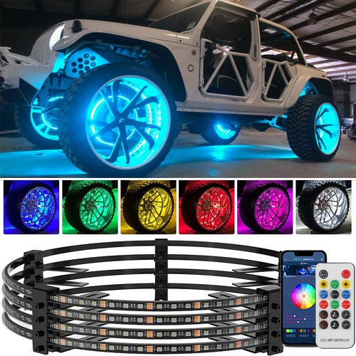 For Jeep Wrangler 4x 15.5" RGB LED Wheel Ring Lights Underglow Chasing Rim Lamps