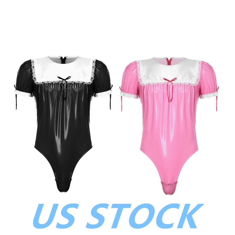 Men adults wet look sissy maid cosplay costume Halloween roleplay set, make you alluring and seductive.