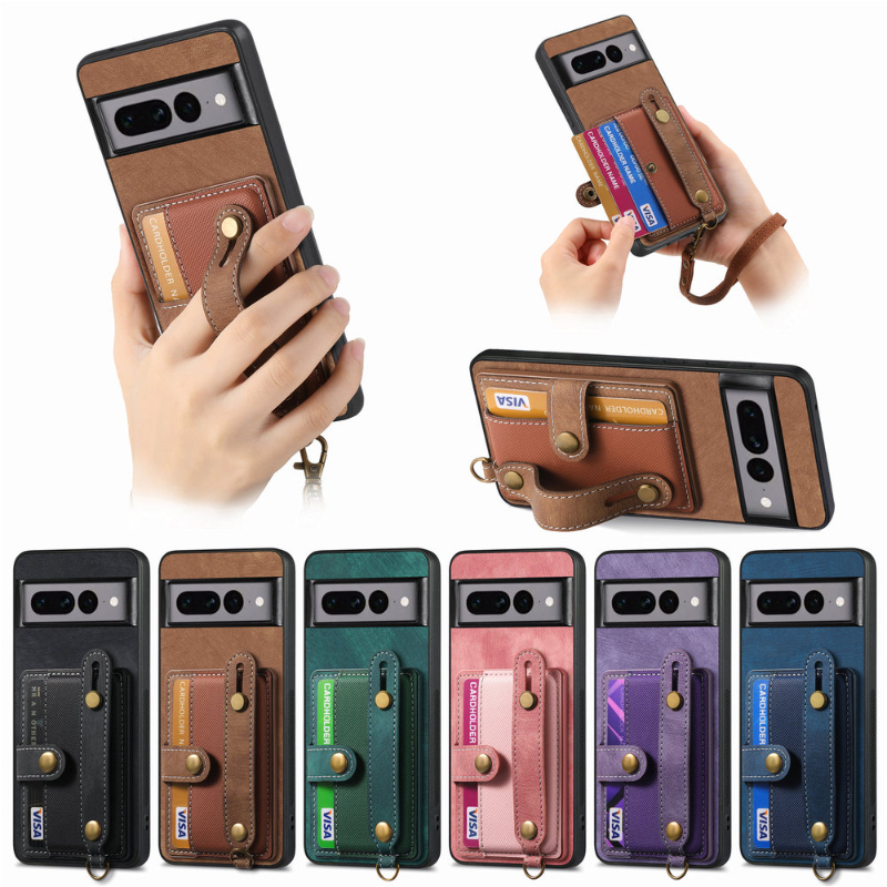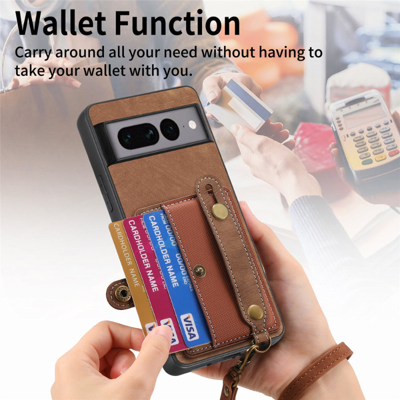 For Google Pixel 8 8Pro /7 Pro/7A/6 PU Leather Card Wallet Case with Strap