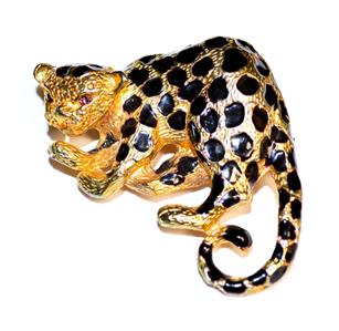 Vintage Signed PARK LANE Goldtone Black Enamel JAGUAR Shape Pin Brooch