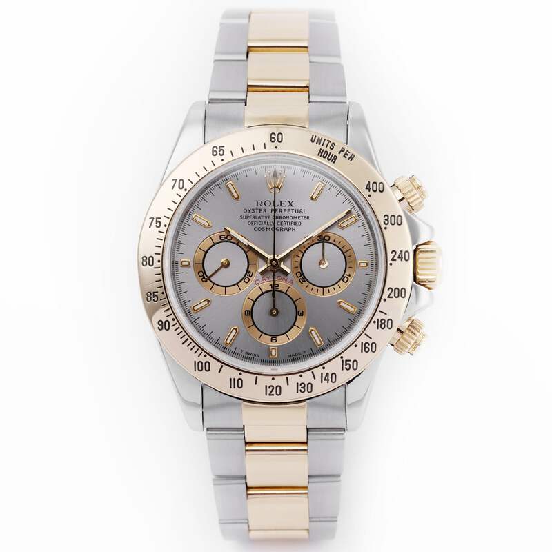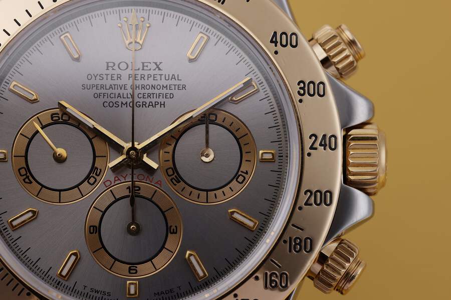 Pre-owned, excellent condition Rolex Daytona Zenith reference 16523 Stainless Steel & 18k Yellow Gold gents wristwatch. Silver dial, Gold baton hour markers, a Stainless Steel 40mm case, an 18k Yellow Gold bezel, winder and pushers, a Stainless Steel & 18k Yellow Gold Oyster bracelet and deployant clasp, sapphire crystal glass, automatic movement and waterproof up to 100m.