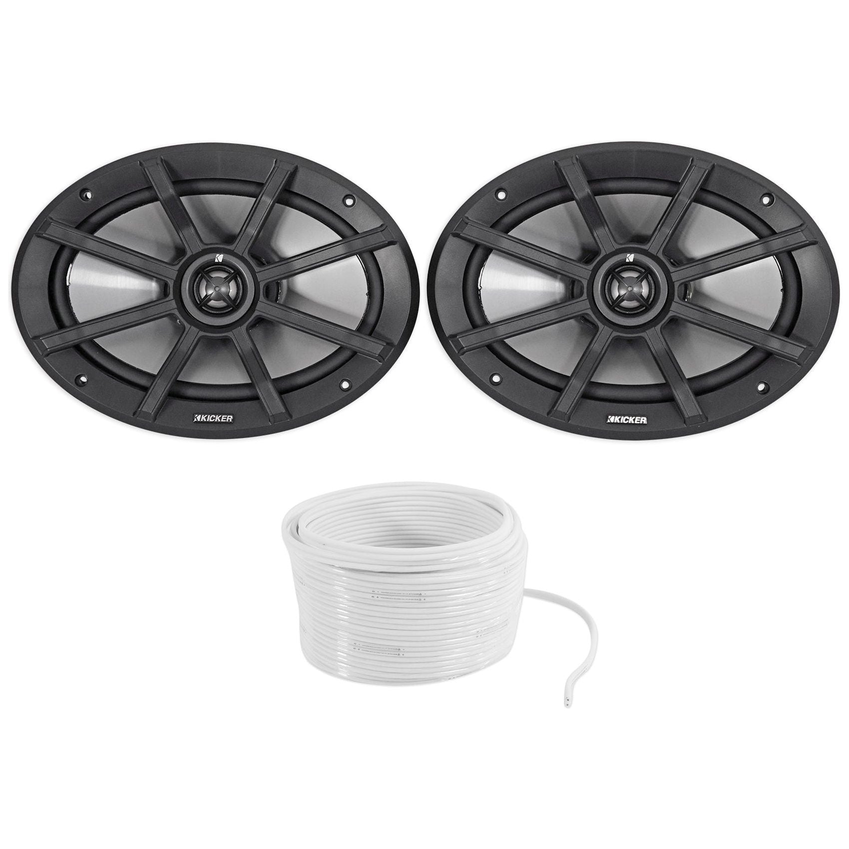 Package: Pair of Kicker 40PS692 6x9" 2-Ohm ATV/Motorcycle Speakers Totaling 360 Watt Peak/180 Watt RMS + Rockville MARINE 16G50 OFC 16 Gauge 50 Foot 100% Copper Speaker Wire White