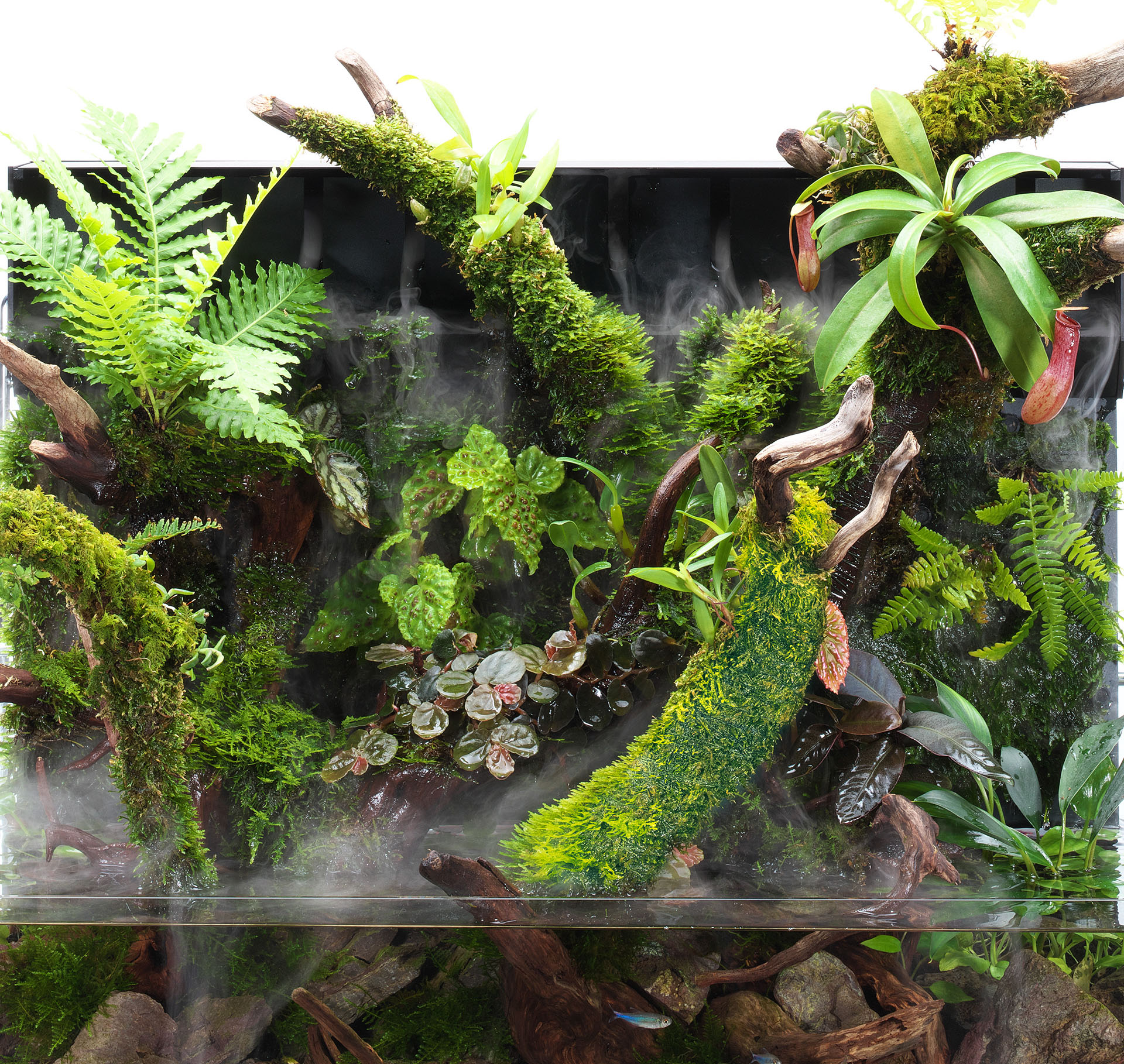 Mit der Mizukusa Mist Wall 60 lässt sich das Aquarium wundervoll in ein herrliches Dschungelflair versetzten. Aufgesetzt auf den Aquarienrand von randlosen Becken werden traumhafte Uferbiotope Wirklichkeit. Diese Wasserfallrückwand aus hochwertigem Acryl stammt aus dem Hause Aqua Design Amano (ADA) und zeichnet sich vor allem durch ein durchdachtes Konzept und ein einfaches Handling aus.