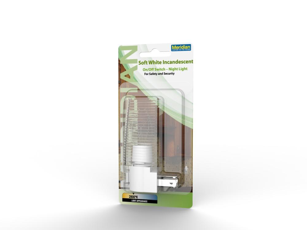 The Meridian manual night light is great for safety and security. It includes a soft white C7 bulb, and the base has an ON/OFF switch.