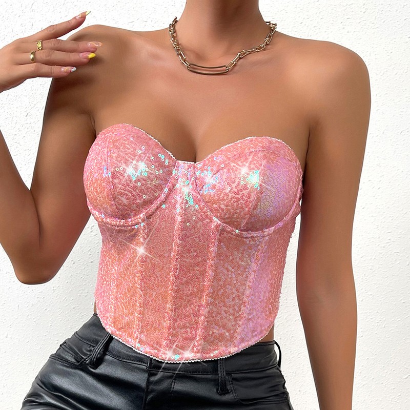 Women strapless bustier with sequins that sparkle under the light to make you eye-catching and charming in the crowd.