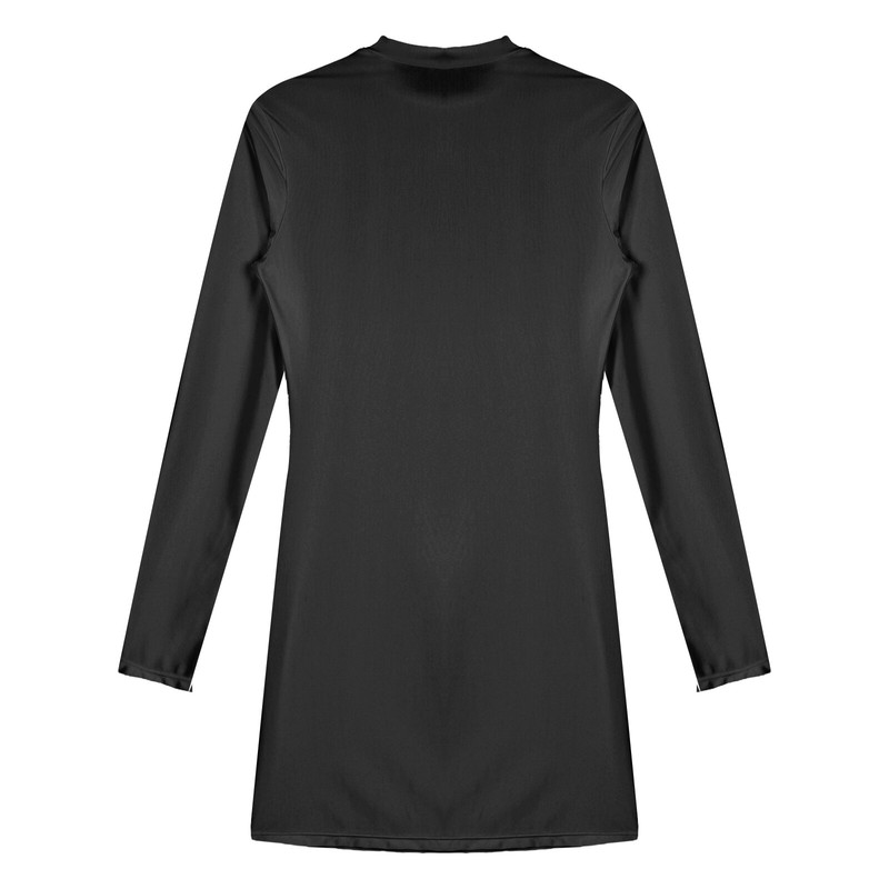 Designed with round neck and sweetheart illusion, long sleeve, back zipper closure, mini length and slim fit, you look sexy and charming.