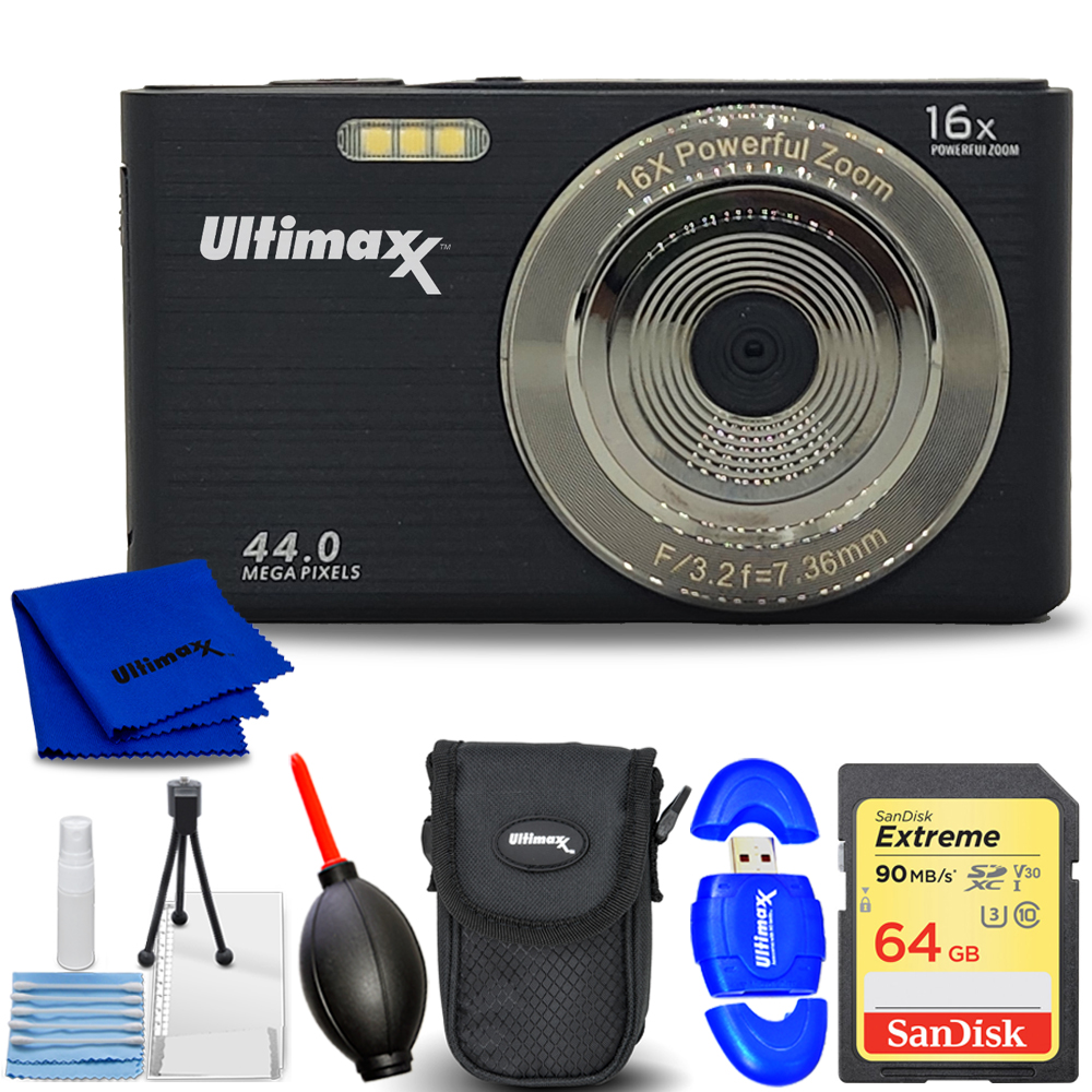 Ultimaxx Digital Camera, 44MP w/ 32GB SD Card, Case, USB Cable - Black