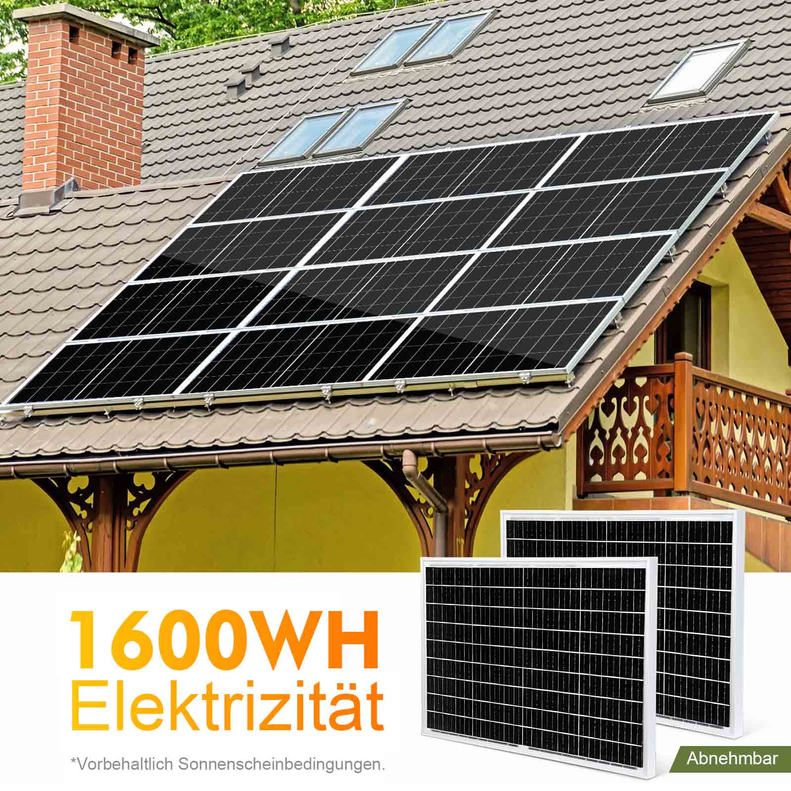 2 x 100W Solarpanel, das 1,6KWH pro Tag erzeugt