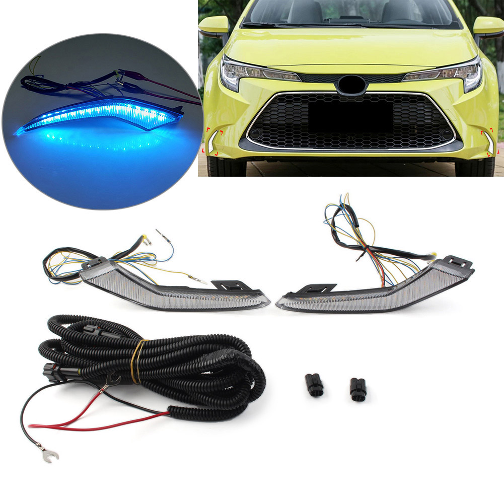 Daytime Running Light DRL Turn Signal Light With White Yellow Blue Light For Toyota Corolla L LE XLE 2020-2023 Features: 1. 100% brand new and high quality. 2. Sealed and waterproof, long service time. 3. No need to change the car to install the item. 4. High temperature resistant, more security and stability. 5. Increase your visibility during heavy rain, snow, dense fog and night time driving. 6. The White Yellow Blue light has three functions, DRL and the turn signals and night blue. When you are driving straight, it lights up white. When you turn left or right, it flashing yellow light. When you turn on headlight, it lights up blue. Fitment: Fit for Toyota Corolla L/LE/XLE 2020-2023 Fit for Toyota Levin 2019-2021 DO NOT FIT for SE/XSE models Please kindly check our item description, photos and sizes, make sure this item fit for your car before place an order. Specification: Condition: 100% Brand New Material: Plastic Hosing Color: Black Lens Color: White Light Color: White for DRL + Yellow (Dynamic Sequential Turning Signal Light) + Blue (Night Model) Fitment Type: Direct Replacement Placement on Vehicle: Front, Left, Right Packing Included: 2 x Daytime Running Lights (Left & Right) 1 x Wire Harness Notes: 1. Caution: Disconnect the power before installation. 2. If you not familiar with DIY, please ask professional for help. 3. All dimensions are measured by hand, there may be small deviations. 4. The real color of the item may be slightly different from the pictures shown on website caused by many factors such as brightness of your monitor and light brightness.