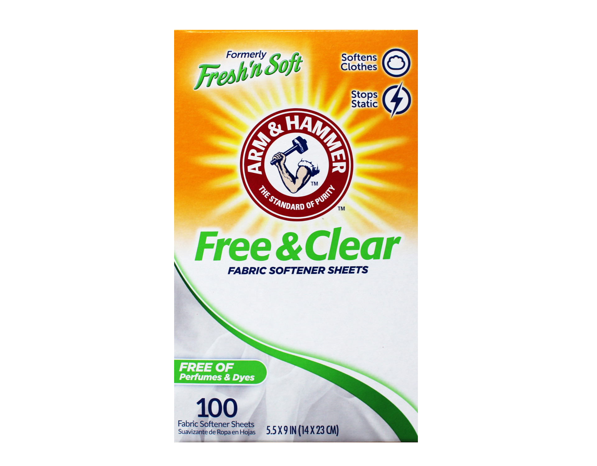 Add softness to your laundry with ARM HAMMER Fabric Softener Sheets Free of Perfumes and Dyes Bullet Feature 1* Free of Perfumes and Dyes Bullet Feature 2* Softens clothes Bullet Feature 3* Reduces static cling Bullet Feature 4* 100 Sheets Bullet Feature 5* ARM HAMMER Fabric Softener Sheets, 100 sheets, Free of Perfumes and Dyes. Usage: Place a new sheet on top of wet clothes in dryer. For large loads or extra softness use two sheets. For synthetics use low heat. If spotting occurs, wet and rub spot with bar soap and rewash. Safe for all washables. Indications for Use* Place a new sheet on top of wet clothes in dryer.