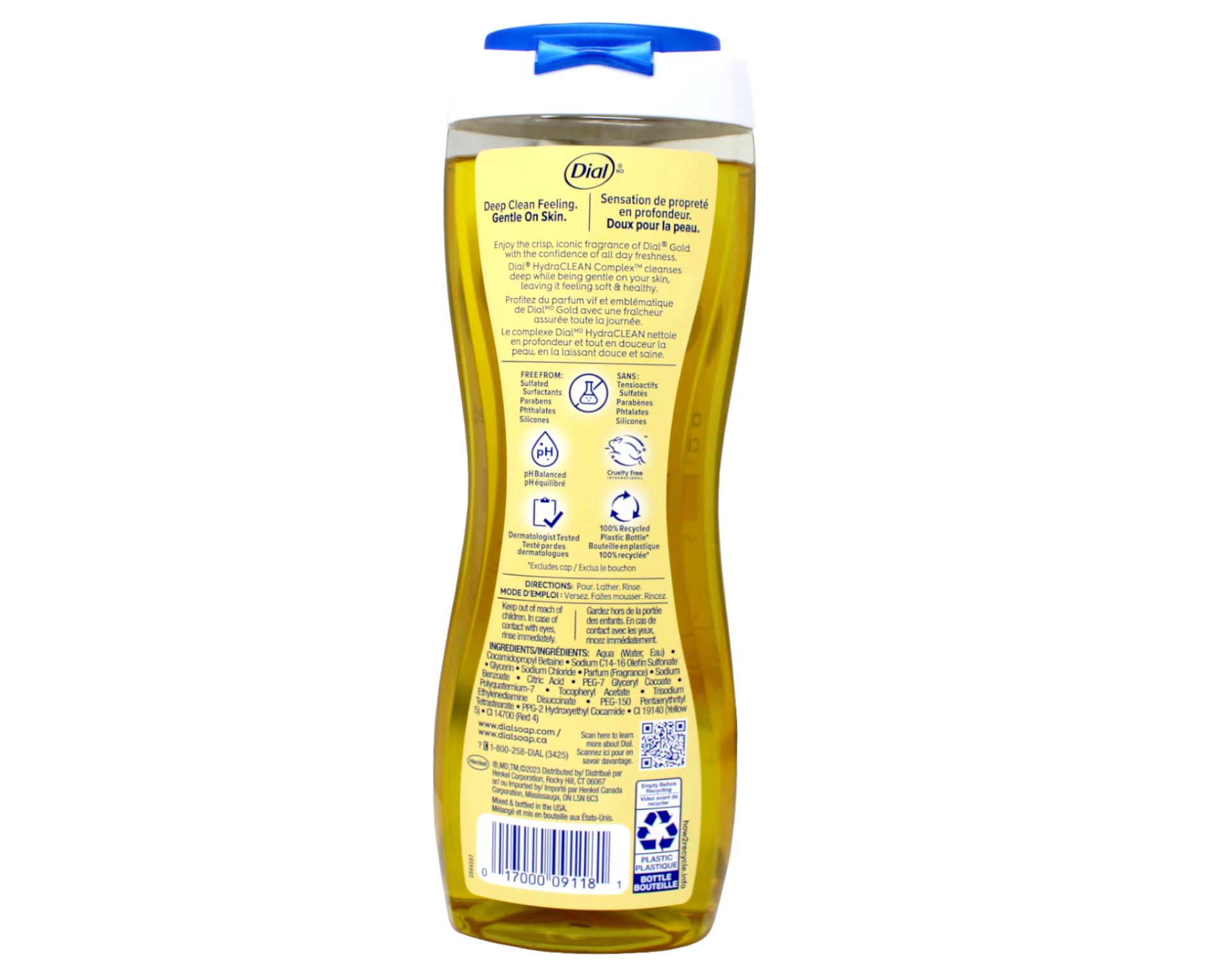Decreases bacteria on the skin 'Round the clock odor protection Kills germs & keeps you smelling fresh Dial Body Wash, Gold - a Dial brand heritage shower gel! This body wash is developed to rinse clean, leaving skin feeling hydrated without a filmy residue. Shower yourself in a freshness that lasts all day, with Round The Clock odor protection. Invigorating scents and lightweight hydration body wash to leave skin feeling healthy and keeps you smelling fresh. Skin Smart formulas from Dial are created with moisturizing conditioners & gentle cleaners to give you a perfectly balanced clean. This package contains one bottle of 16 fl oz Dial Gold Body Wash. To use: squeeze onto a wet body sponge or pouf, work into a lather, and rinse clean. America's trusted brand for over 70 years, Dial continues to deliver clean, healthy skin for you and your family. Rich gold color, creamy lather, classic bracing scent MOISTURE BALANCE TECHNOLOGY: Moisturizing - Clean Rinsing Rich Lather: Leaves Skin feeling nourished and silky CLEAN RINSING FORMULAS: Developed to rinse clean, leaving skin feeling hydrated without a filmy residue WASHES AWAY BACTERIA: Dial Body Wash is good for everyday washing and is formulated to wash away bacteria, keeping you feeling fresh and clean Made in United States 1. Squeeze out 2. Lather up 3. Rinse off ©2021 Henkel Corporation