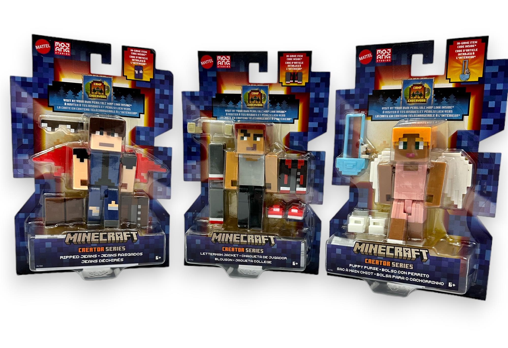 Customize your Camp Enderwood Camper action figures with 5 mix-and-match accessories included These 3.25-inch figures feature movable joints for dynamic play and storytelling. Compatible with most Minecraft 3.25-inch figures, these camper toys bring endless adventure to life. The Creator Series figures are re-creations of the quirky digital characters found in the NEW exciting Minecraft Camp Enderwood DLC map. Each 3.25-inch Camp Enderwood action figure has five accessories. Swap them out and reenact thrilling in-game camp activities and adventures. Each figure includes 2 DLC codes! 1 for a Camp Enderwood DLC map and another for an exclusive in-game accessory item players can't find anywhere else!