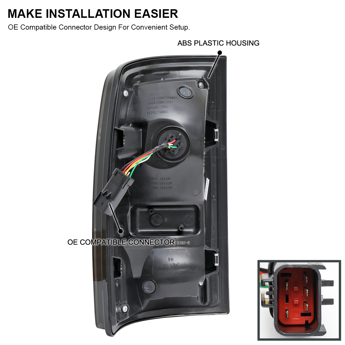 | Features | Full LED Tail Lights Fiber Optic Dynamic LED Strip With Startup Animation (Will Be Activated When Turn On Parking Light) Sequential LED Turn Signal Lights |