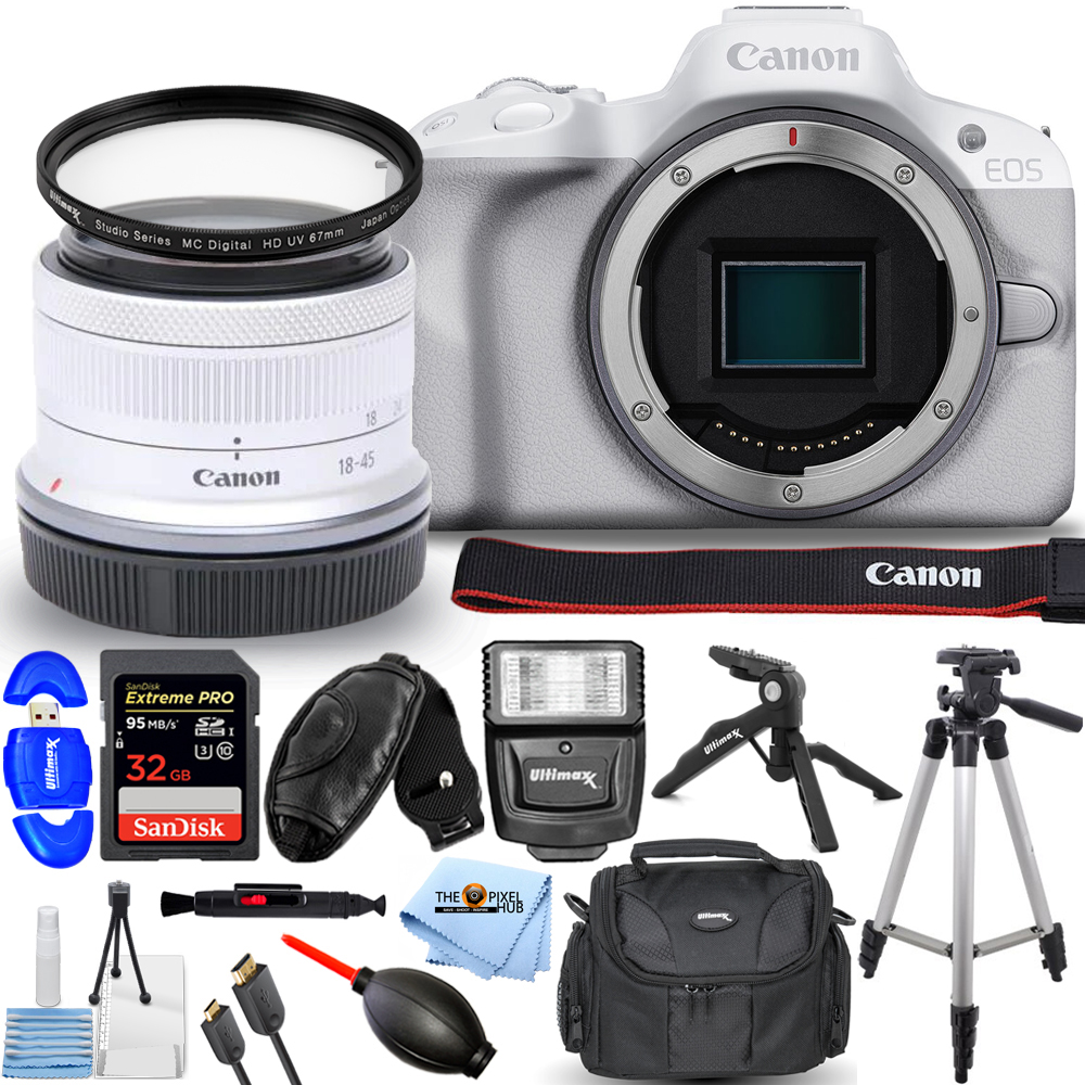 - Canon EOS R50 Mirrorless Camera with 18-45mm Lens (White)